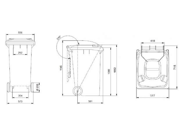 CONTENITORI IN PLASTICA 2 RUOTE DIMENSIONI 557 × 715 × 1062 mm