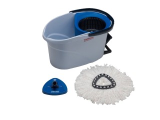 UltraSpin Mini è molto facile da usare. Basta immergere il mop nella soluzione detergente, inserirlo nello strizzatore, premere il pedale per avviare il movimento rotatorio, quindi rimuovere e iniziare le operazioni di pulizia.