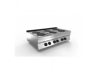 - 6 Piastre cottura ad alto rendimento con potenze da 2,6 kW ciascuna