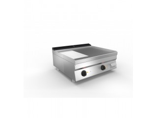 Il piano di lavoro è leggermente inclinato in modo da convogliare sughi, grassi e condimenti, nell'apposito cassetto di raccolta ad ampia capacità. Ampio cassetto raccogli grassi in acciaio inox con ispezione per monitorare il livello dei liquidi al suo interno. Alzatina paraschizzi in appoggio con punti di ancoraggio, fornita di serie. Versione elettrica con termostato di sicurezza e spie luminose di accensione. grado di protezione all’acqua IPX4.